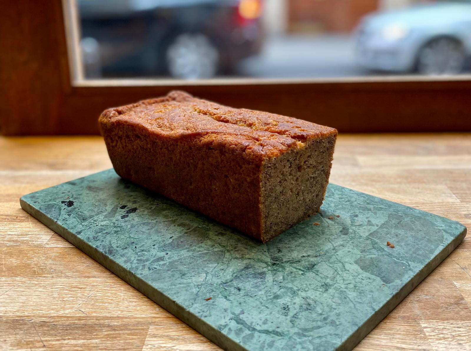 Notre banana bread maison, parfait pour accompagner un café.