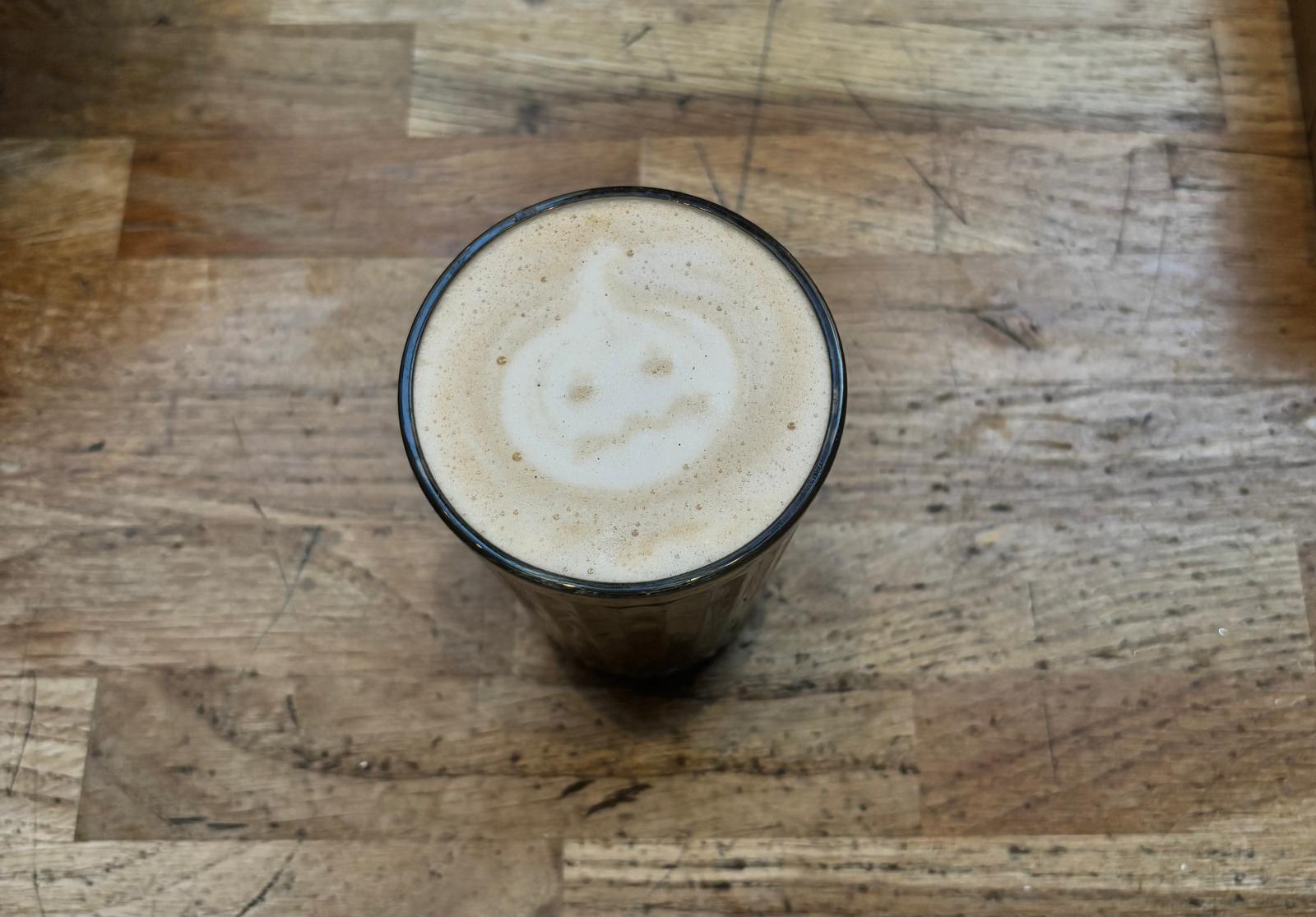 Latte spécial automne : un mélange maison à base de café et des épicées. Avec du lait normal ou du lait végétal +0,5 (31cl)